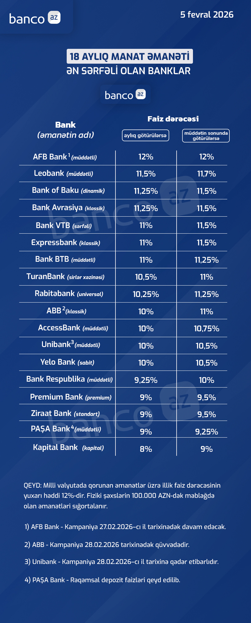 - Manat əmanəti hansı banklarda daha sərfəlidir? – Fevral 2026