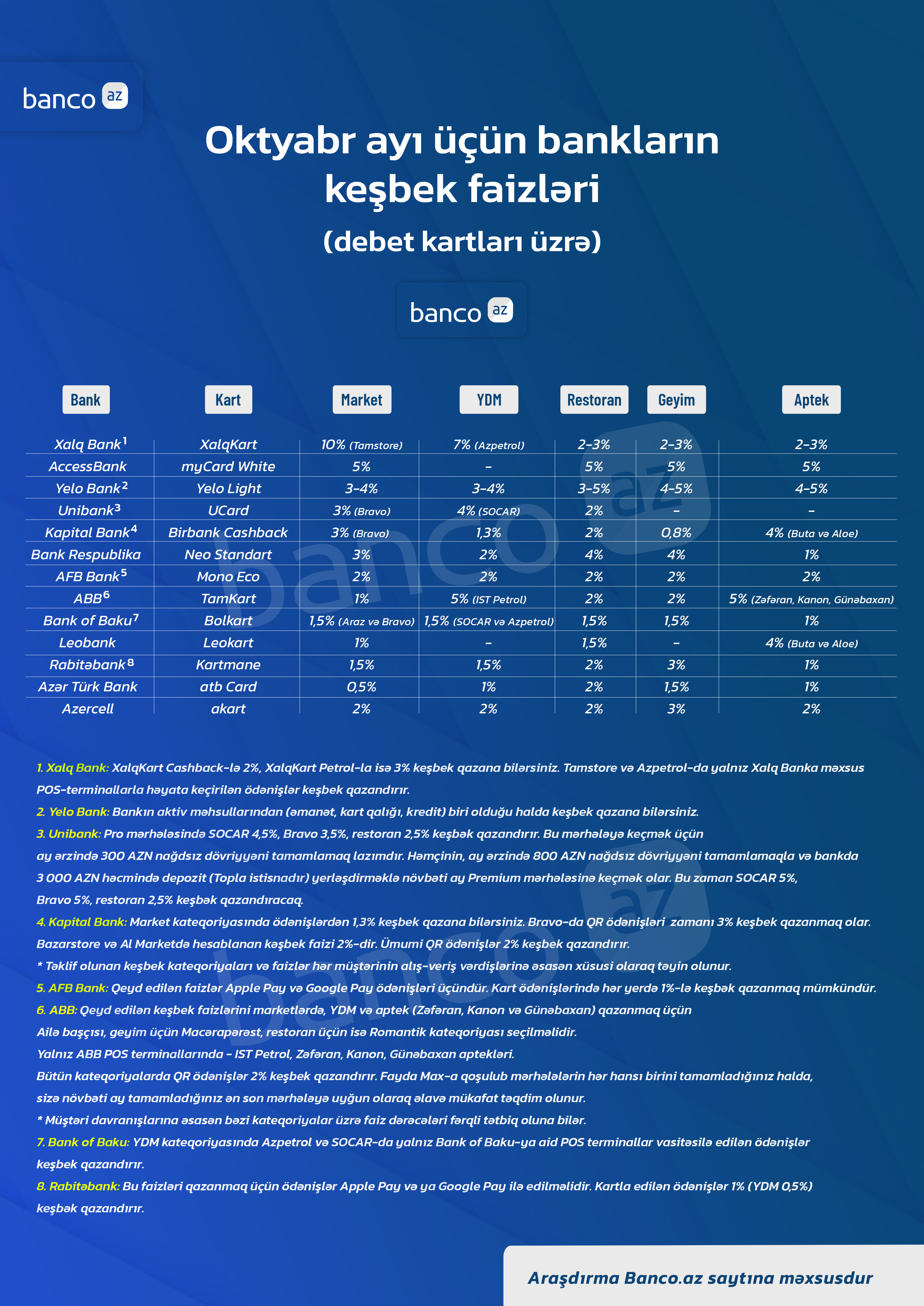Hansı banklar cashback üçün daha sərfəlidir öyrənmək istəyirsinizsə, infoqrafikə nəzər sala bilərsiniz.