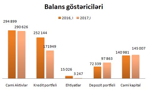 Ötən ilin eyni dövrü ilə müqayisədə ExpressBankın depozit portfelində 35%, cəmi kapitalın həcmində isə 3% yüksəlmə olub. Bankın aktivləri cüzi azaldığı halda, bankın kredit portfeli 2016-ci ilin rübü ilə müqayisədə 31% kiçilib. Beləliklə, bankın aktivlərinin həcmi 290, 626 mln, kredit portfeli 171,949 mln, depozit portfeli isə 97,863 mln manat ətrafında formalaşıb. Daha bir vacib məqam isə kreditlər üzrə mümkün zərərlərin ödənilməsi üçün məqsədli ehtiyatların həcminin də 72% azalmış olmasıdır.