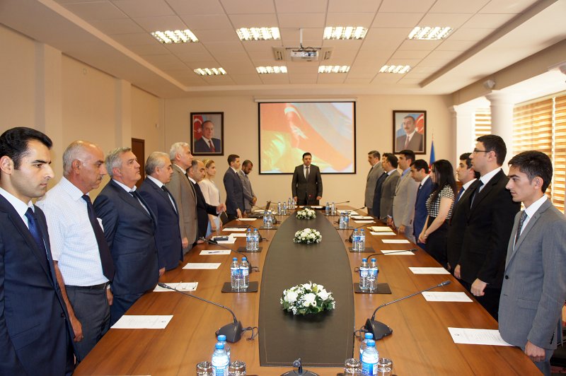 Azərbaycan Respublikasının dövlət himni səsləndikdən sonra ilk dəfə daimi dövlət qulluğuna qəbul edilən əməkdaşlar Azərbaycan Respublikasının dövlət bayrağı altında və Azərbaycan Respublikasının Konstitusiyasına əl basaraq Azərbaycan Respublikasına sadiq olacaqlarına, onun Konstitusiyasına dönmədən əməl edəcəklərinə, dövlət sirrini və xidməti sirri qoruyacaqlarına, onların üzərinə qoyulan vəzifələri qərəzsiz, vicdanla və Vətənin mənafeyi naminə həyata keçirəcəklərinə and içiblər.