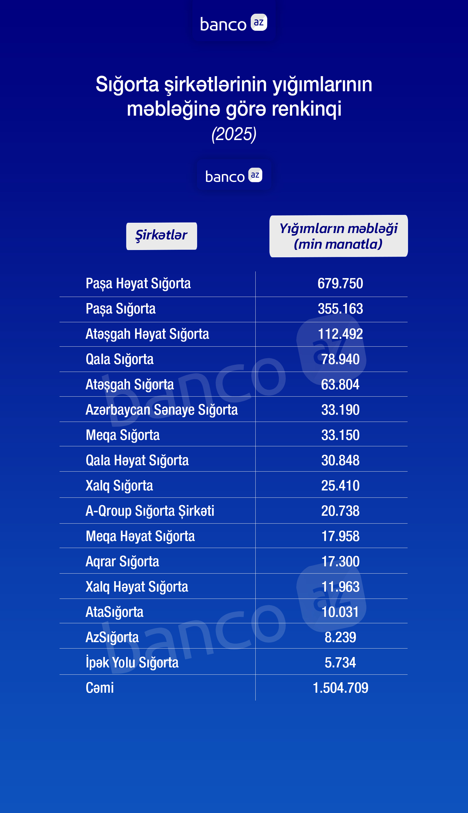 Banco.az sığorta şirkətlərinin yığımlarının məbləğinə görə renkinqini təqdim edir: