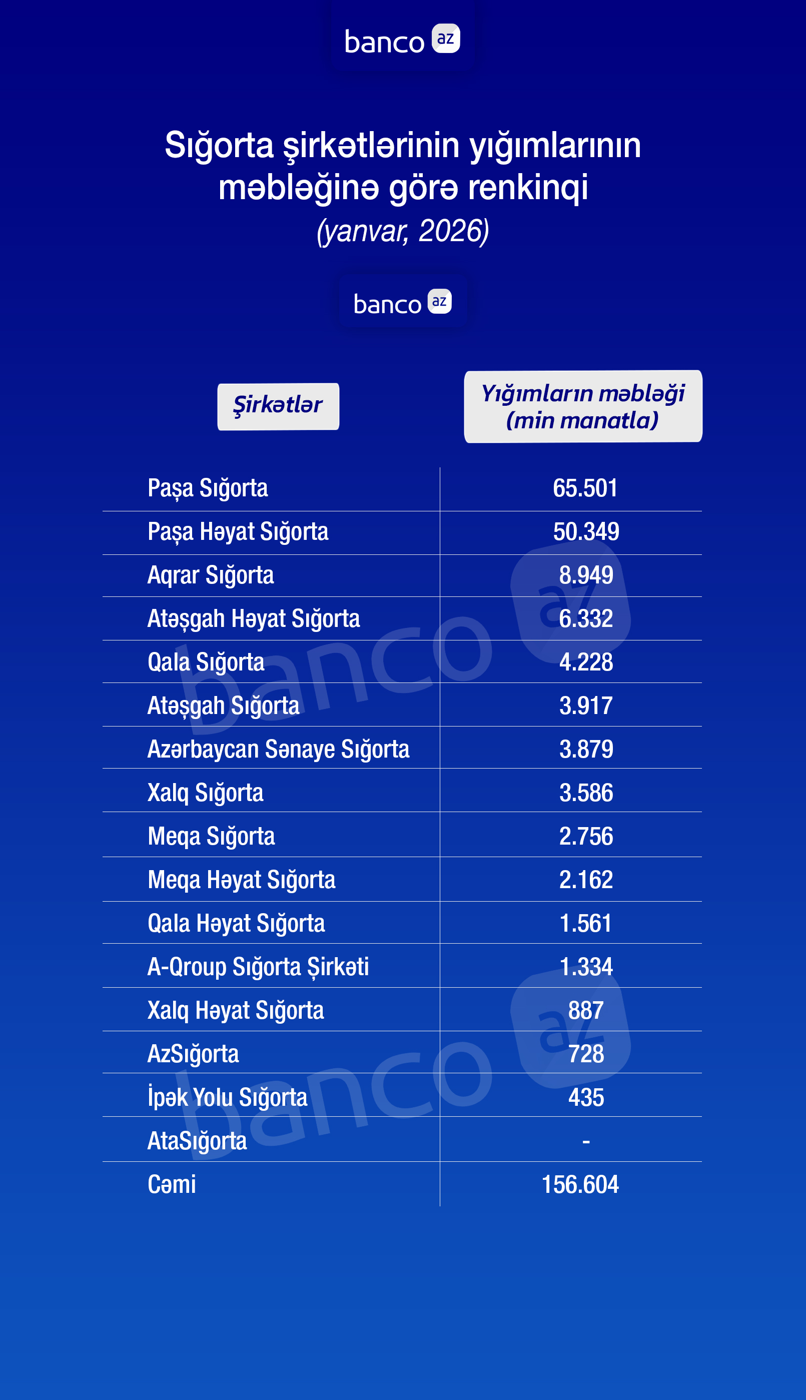 Banco.az sığorta şirkətlərinin yığımlarının məbləğinə görə renkinqini təqdim edir: