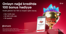 The campaign, titled “100 bonus points for every 100th customer!”, will run until December 30, 2025. As part of the offer, every 100th customer who applies for an online loan at kapitalbank.az, birbank.az, or through the Birbank and m10 mobile apps, with an interest rate starting from 10.9%, will receive 100 bonus points as a gift.